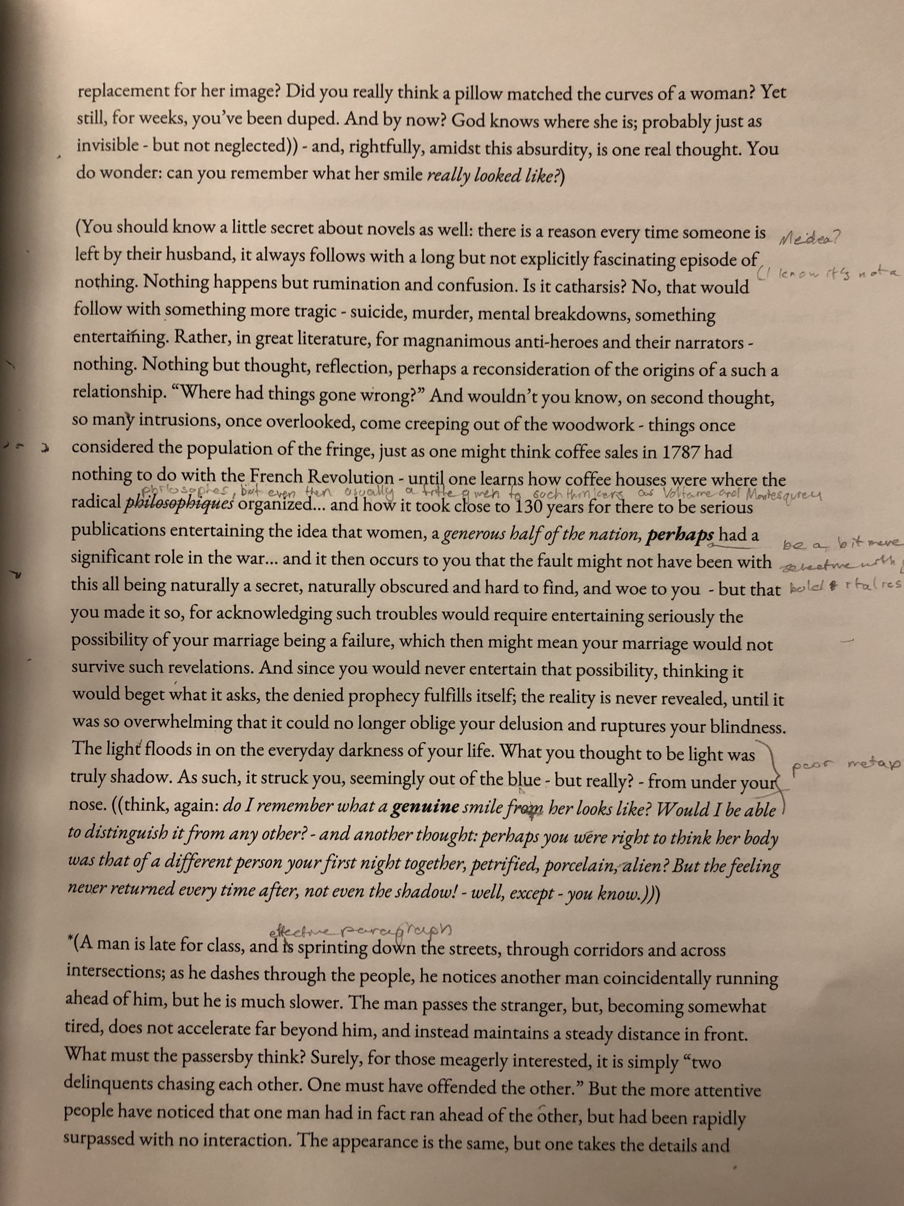 L.B. Zelk, a senior studying Philosophy at Yale University, is a prolific writer for an undergraduate, having written two books and submitted several poems for publication. In this exhibit is an edited excerpt from his second book, To Arcadia, a collection of aphorisms, short stories, and poems, inter-connected by themes of death, love, and memory.