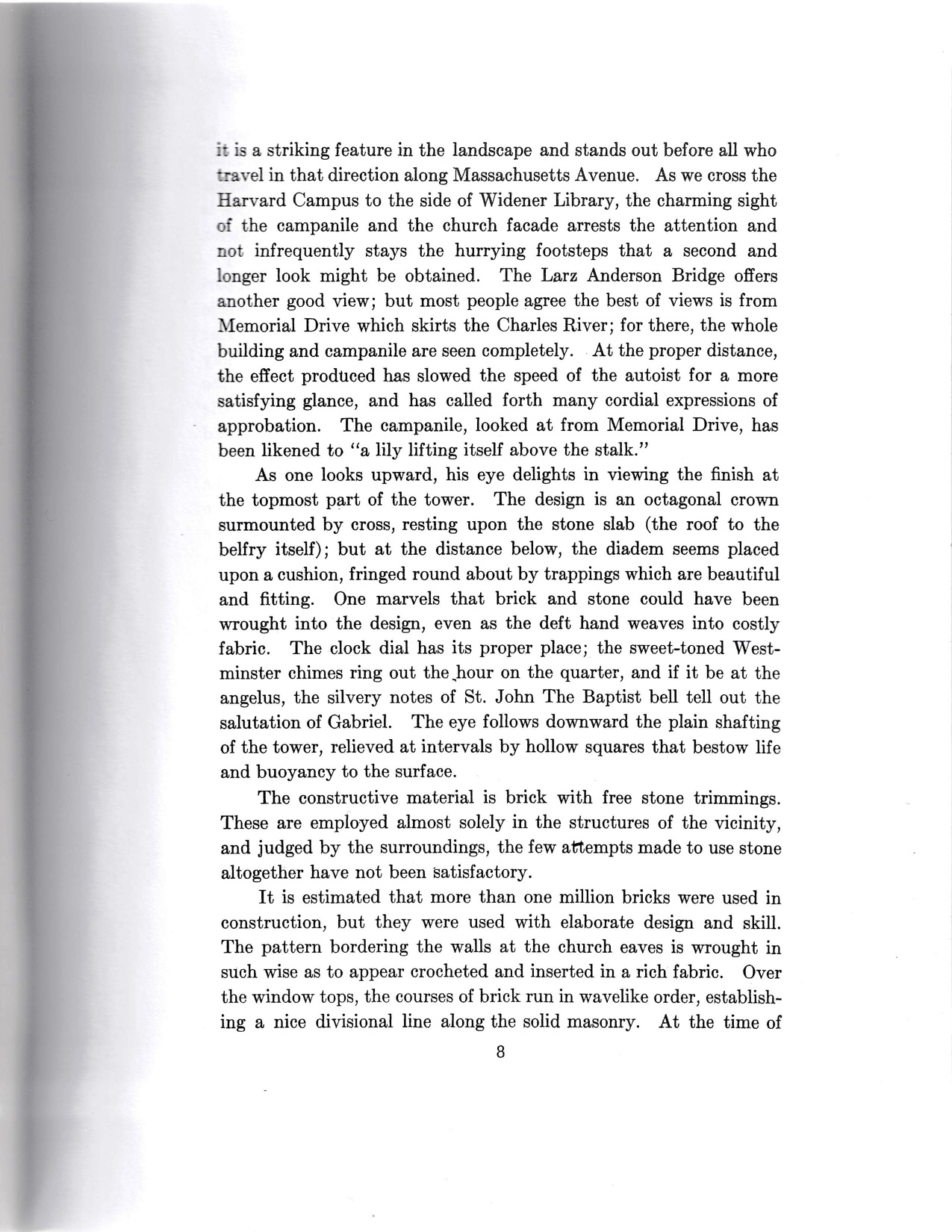 This booklet is a printed copy of an account of details of the building of St. Paul’s Catholic Church, currently located at the corner of Bow and Arrow Streets in Cambridge, Massachusetts. The new church building opened on Easter Sunday in 1923. This description of the details of the building was written by Rev. John J. Ryan, the pastor of St. Paul’s at the time, and printed for the dedication of the new church on October 13, 1924. In the foreword, Fr. Ryan writes that this booklet was published for the “inquiring public” at the “expressed wish” of William Henry Cardinal O’Connell, the Archbishop of Boston. Fr. Ryan notes that “the assurance of a booklet, explanatory of everything to be seen in their church, was welcome with joyous satisfaction” by parishioners and visitors of St. Paul’s.